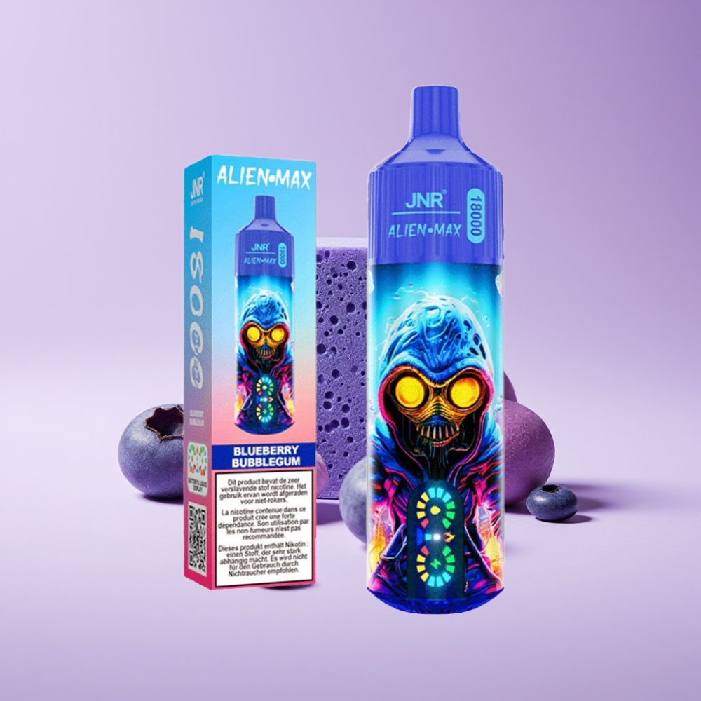 JNR Alien Max 18000 Puffs شاشة LED ذكية، ثنائي الملف، 28مل، نكهة علكة التوت الأزرق