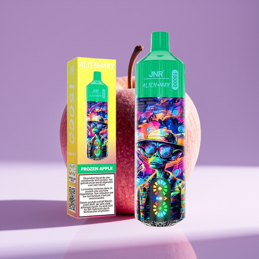 JNR Alien Max 18000 Puffs شاشة LED ذكية، ملف مزدوج، تفاح مجمد