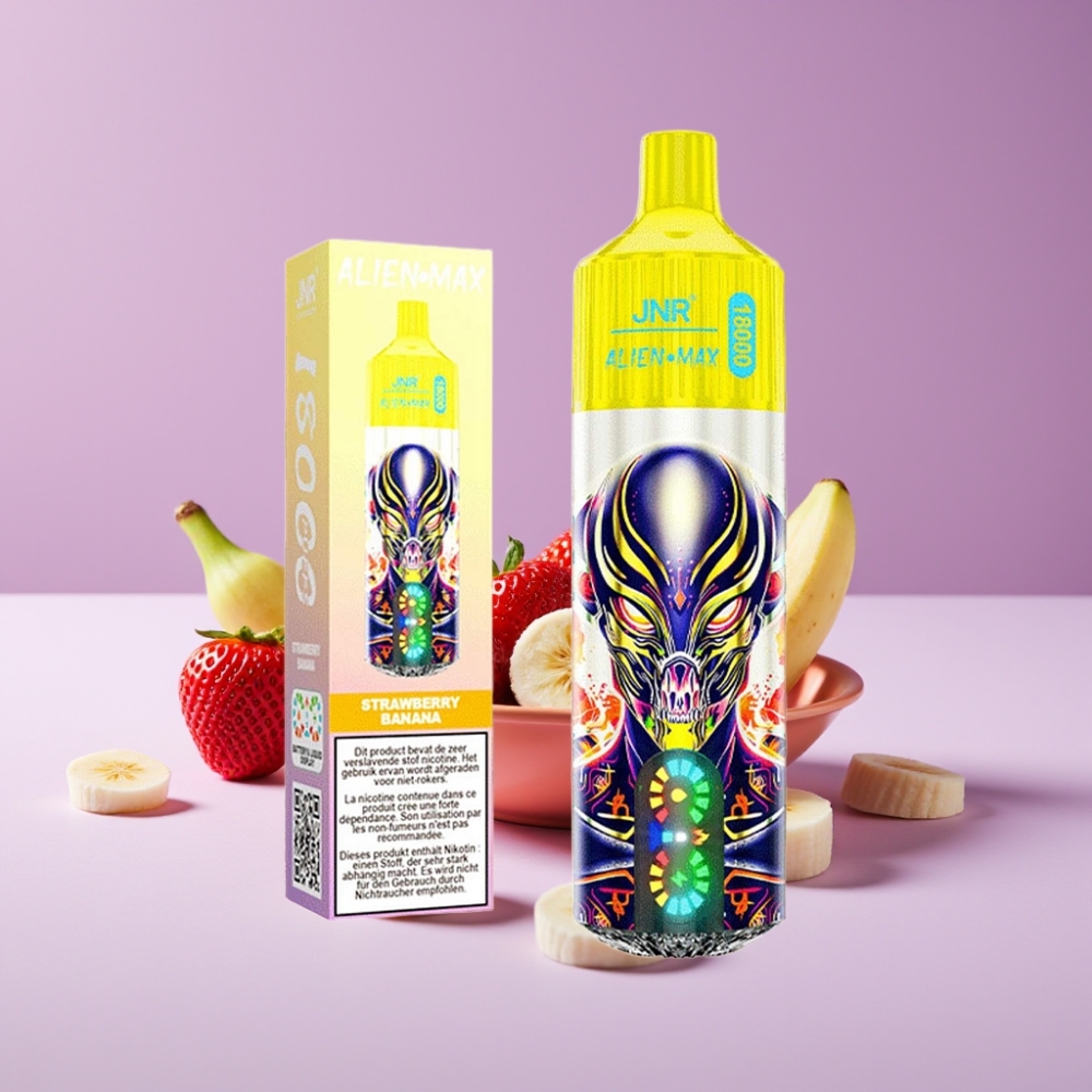 JNR Alien Max 18000 Puffs شاشة LED ذكية ونواة مزدوجة وفراولة موز
