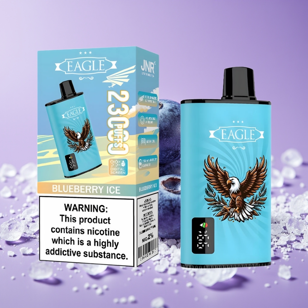 JNR EAGLE Smart 23000 Puffs شاشة رقمية ملف تسخين 1.0ohm تدفق هواء قابل للتعديل بطارية 750mAh توت أزرق مثلج