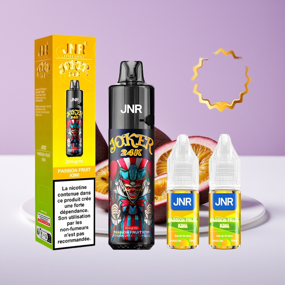 JNR Joker 24K بخار قابل لإعادة الملء 10مل مع بطارية 800mAh ونكهة فاكهة العاطفة والكيوي