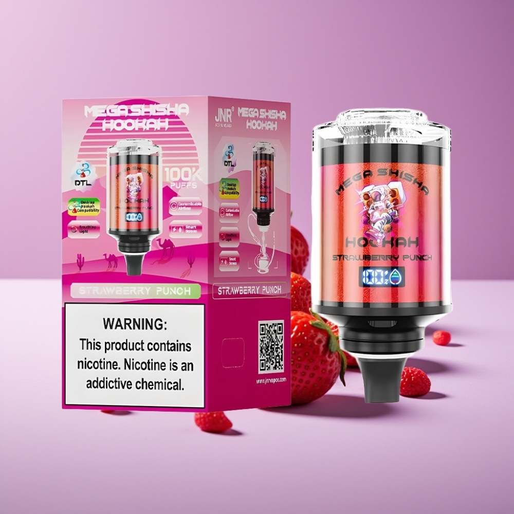 الرئيسية| القائمة المميزة| JNR| JNR Mega Shisha Hookah 100K| JNR Mega Shisha Hookah 100K شاشة ذكية 60ml 2200mAh نوع-C ضوء تنفس هواء قابل للتعديل 2% نيكوتين فراولة بانش